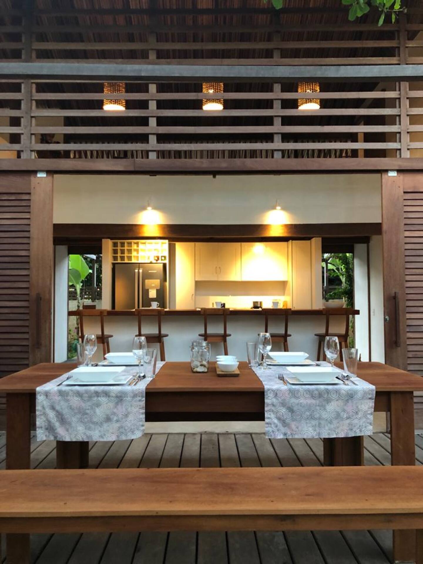 Dinner in the village — fresh fish, cold drinks, sand streets underfoot.